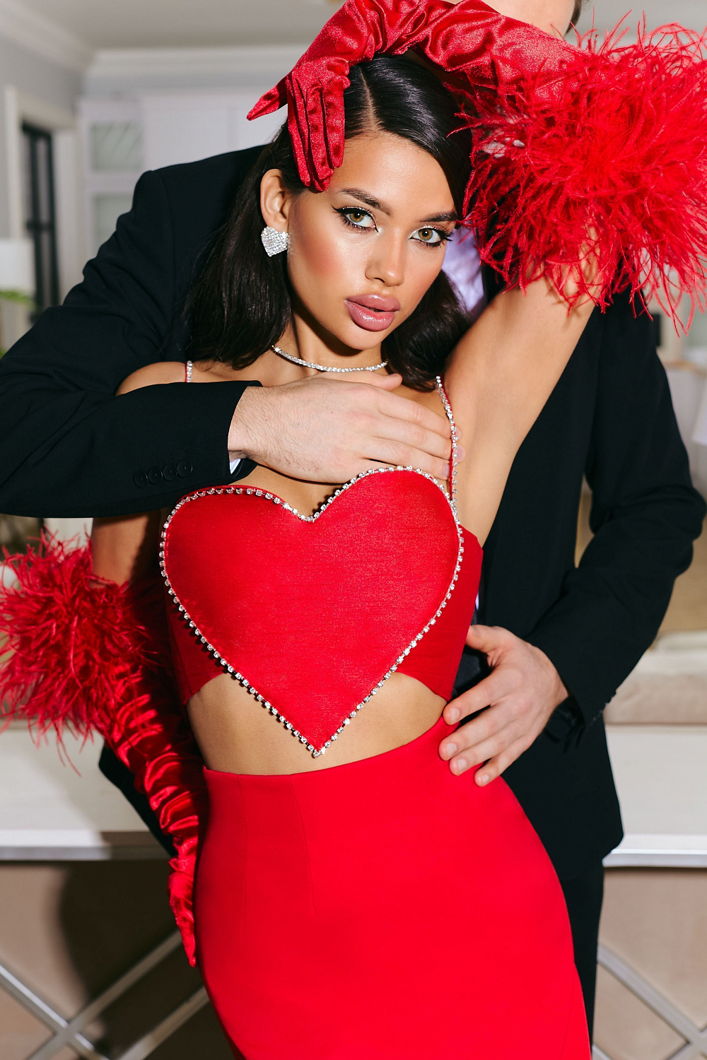 Высокие перчатки, украшенные перьями страуса. Состав: 97% полиэстер, 3% лайкра