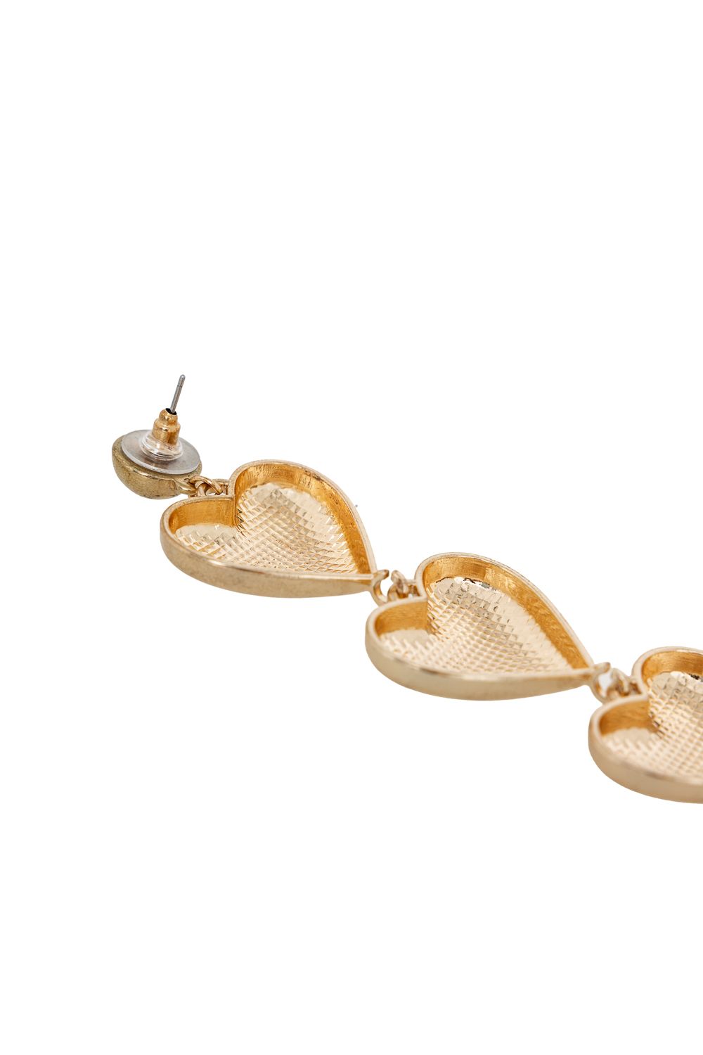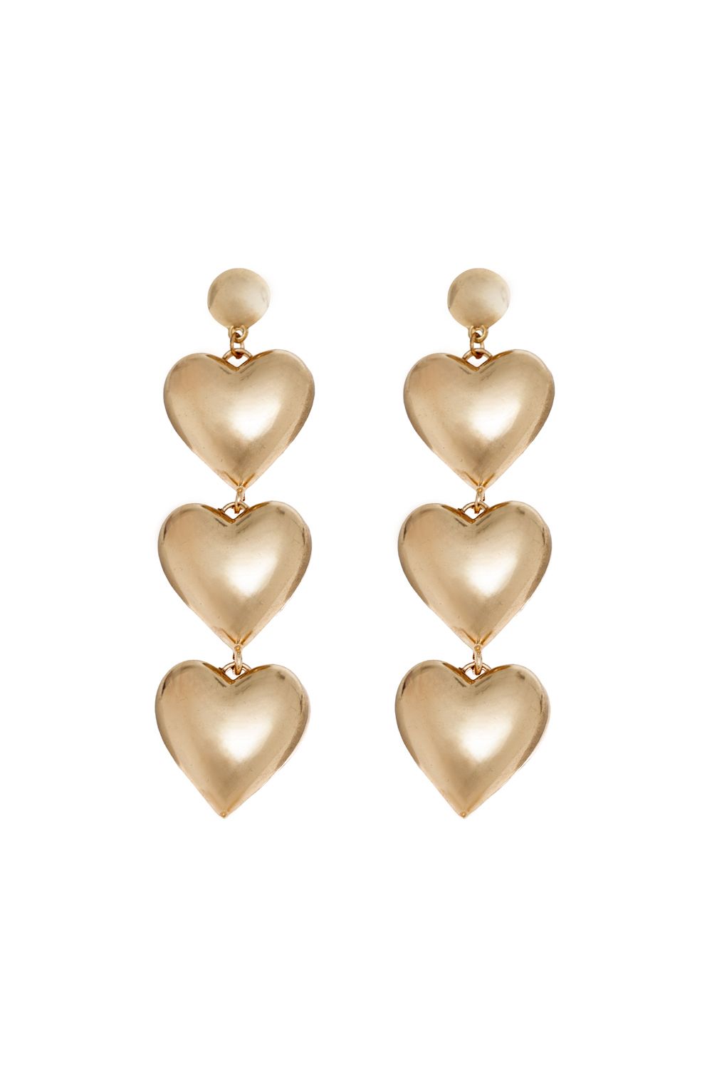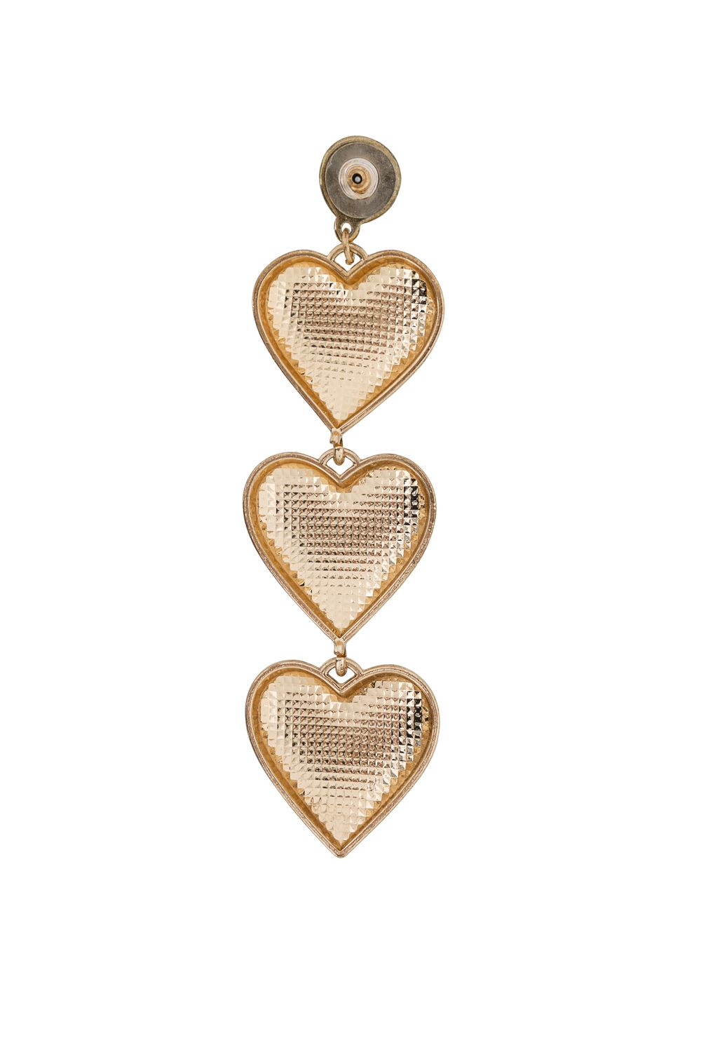 Массивные многоярусные серьги пусеты из трех золотых сердец. Впечатляющее завершение вашего аутфита. Металл/акрил.