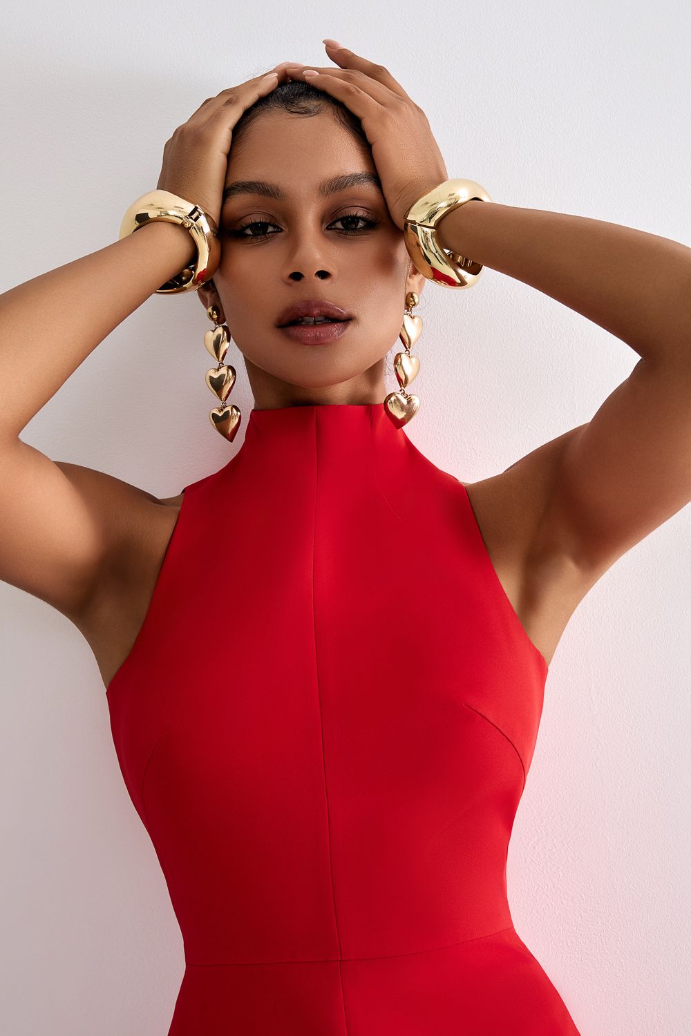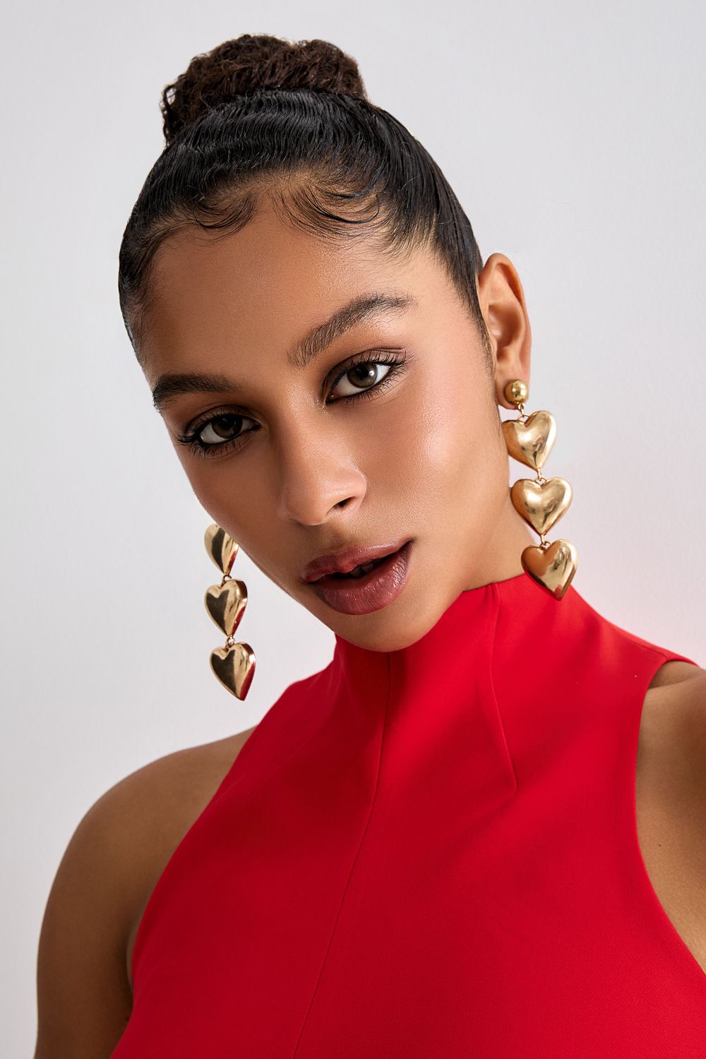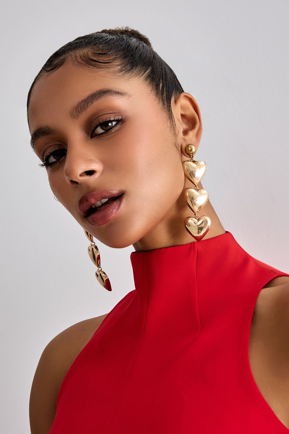 Массивные многоярусные серьги пусеты из трех золотых сердец. Впечатляющее завершение вашего аутфита. Металл/акрил.