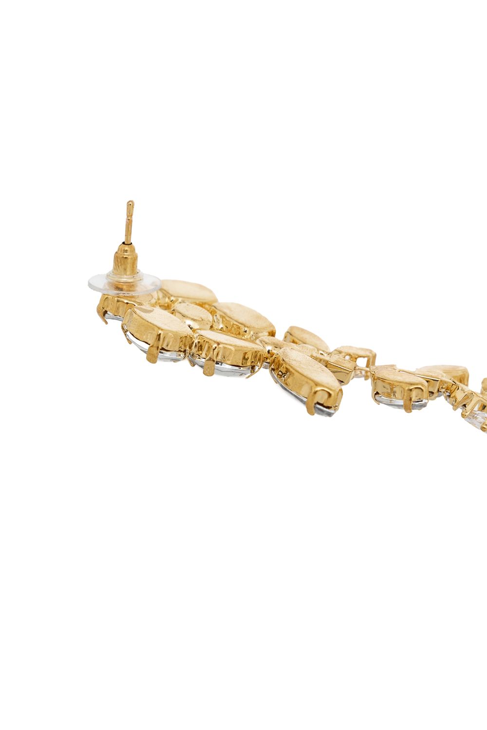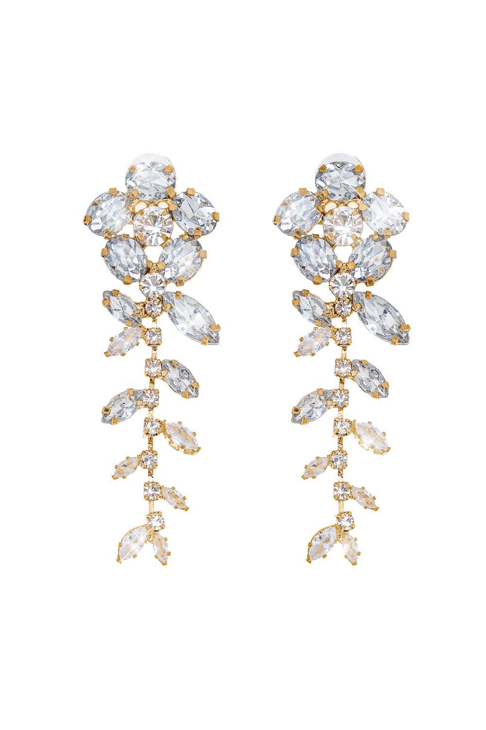 Длинные серьги в форме цветка из кристаллов, фурнитура с золотистым покрытием. Яркий акцент для праздничного или повседневного образа. Состав: Металл/стразы.