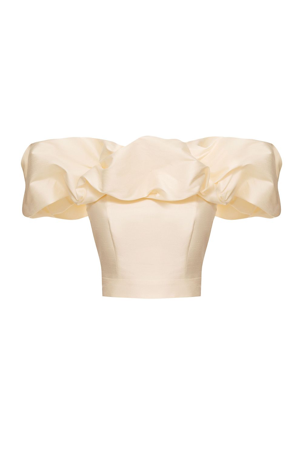 Праздничный облегающий топ украшенный воздушными оборками. Состав: 88% полиэстер, 12% вискоза, Подкладка 95% полиэстер, 5% эластан