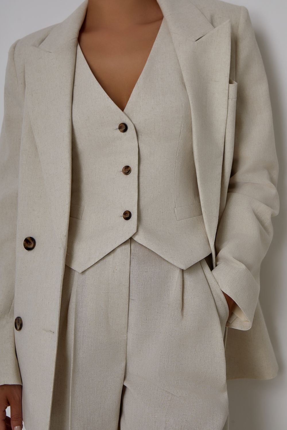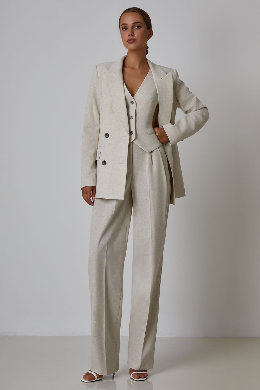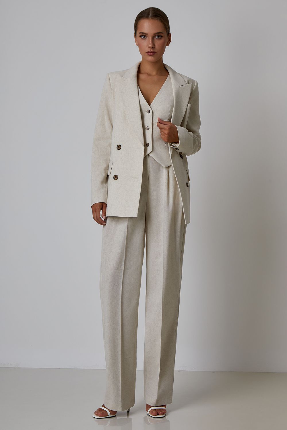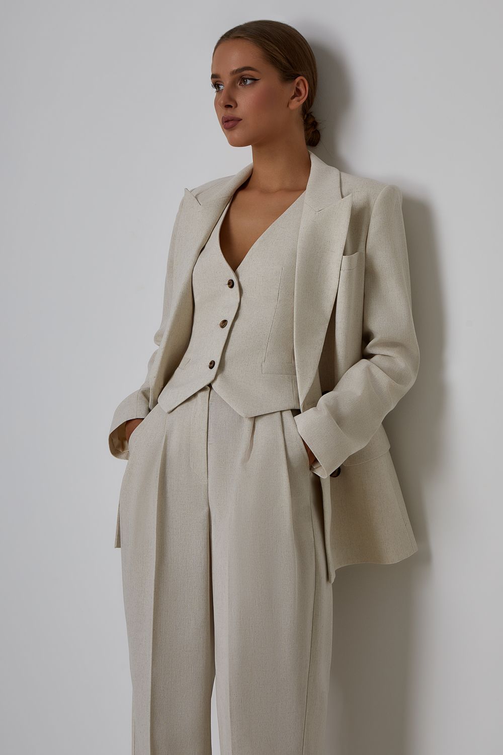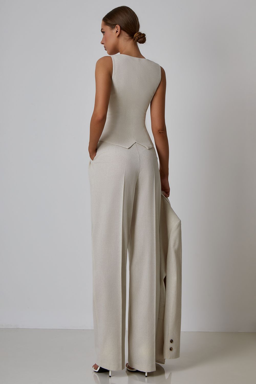 Брюки прямого кроя с завышенной талией и стрелками. К брюкам идеально подойдут жакет (арт.51342) и жилет (арт. 50901) из коллекции LN Family. Состав: 35% вискоза, 35% лен, 30% полиэстер.