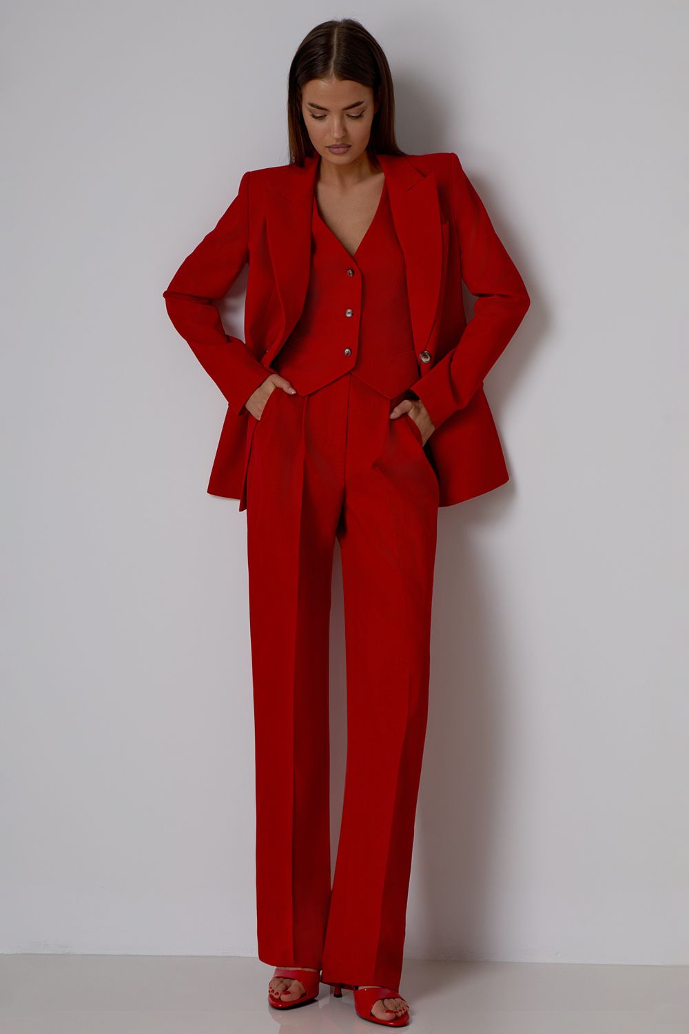 Брюки прямого кроя с завышенной талией и стрелками. К брюкам идеально подойдут жакет (арт.51342) и жилет (арт. 50901) из коллекции LN Family. Состав: 35% вискоза, 35% лен, 30% полиэстер.