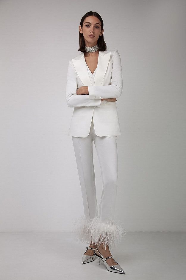 Оригинальные брюки с завышенной талией и перьями страуса, окрашенные натуральным красителем. К брюкам идеально подойдет жакет артикул: 36592. Состав: 63% вискоза, 32% полиэстер, 5% эластан