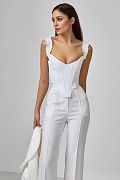 Брюки клеш с классической посадкой по талии. Вшитые карманы и эластичные вставки на поясе обеспечивают удобство и комфорт. Длина по шву 115 см. К брюкам по составу и плотности ткани, идеально подойдет жакет артикул: 54114. Состав: 71% полиэстер, 23% вискоза, 6% эластан