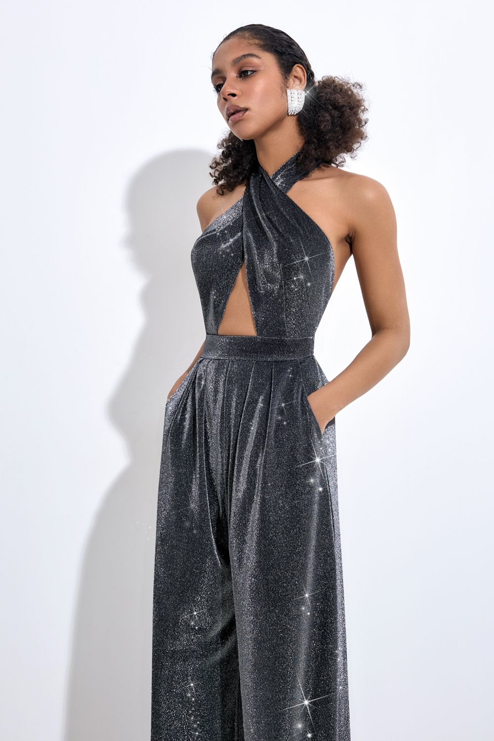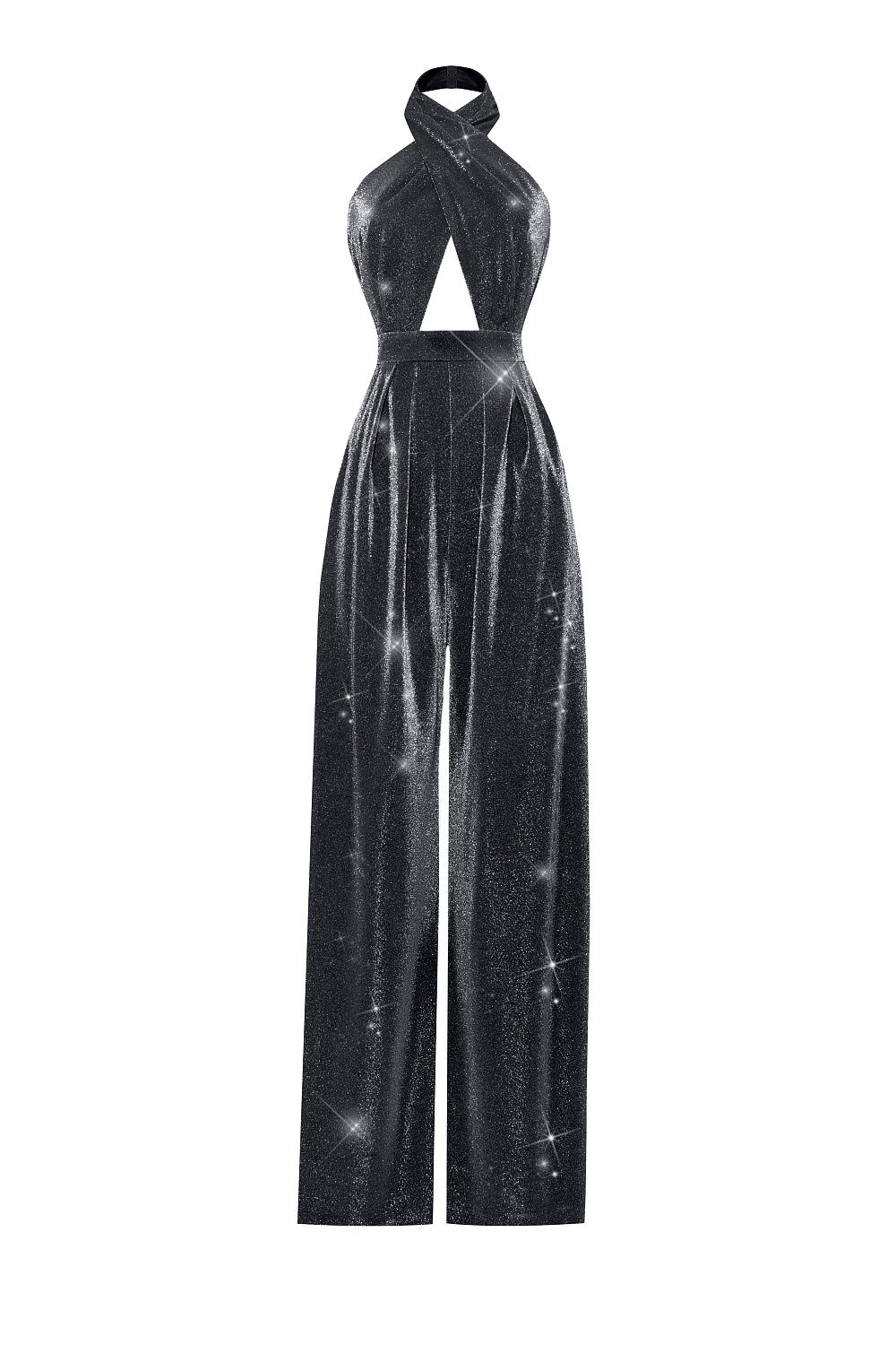 Праздничный комбинезон с широкими брюками и открытой спиной, выполненный из сверкающей ткани. Идеально подойдет для вечеринки или чтобы разнообразить повседневный наряд. Состав: 86% нейлон, 14% люрекс. Подкладка: 100% нейлон.