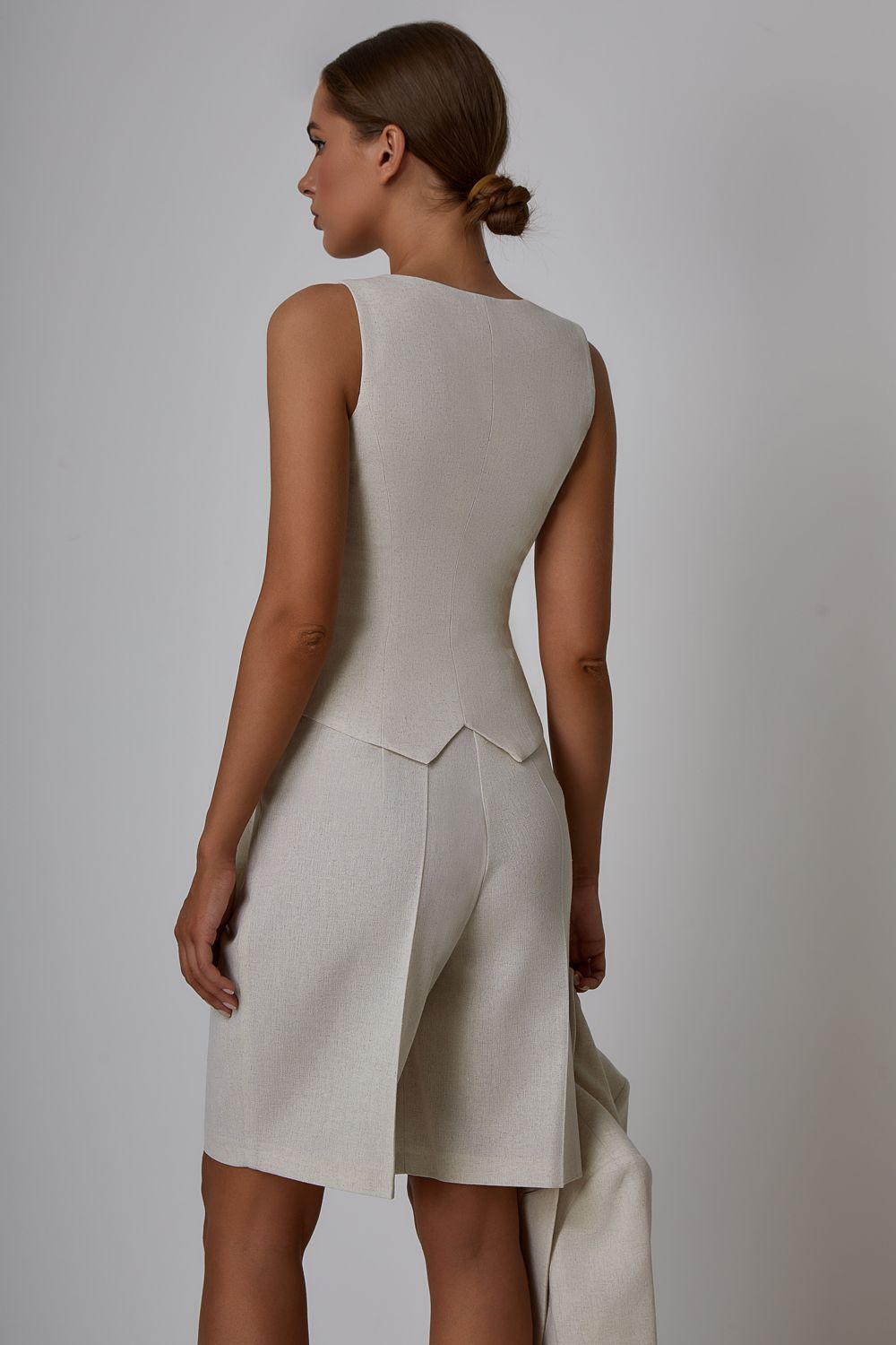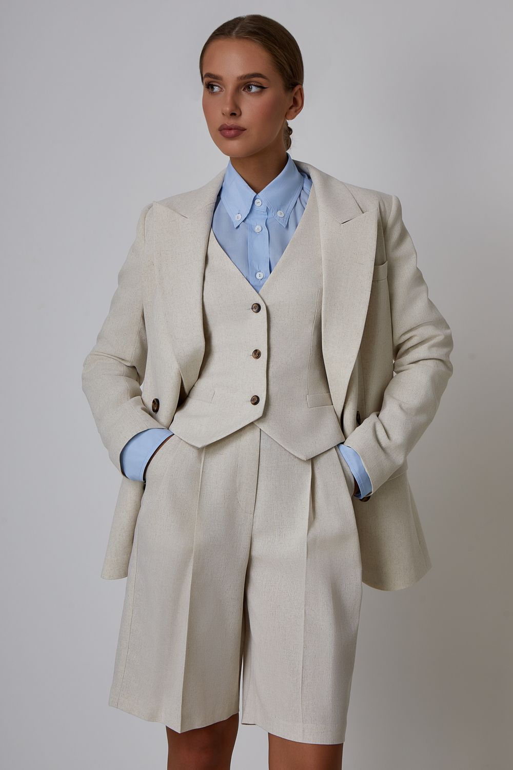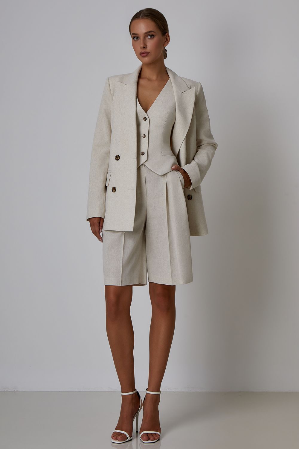 Прямые льняные шорты, идеально подходящие к жакету (арт. 51342) и жилету (арт. 50901) из коллекции LN Family. Состав: 35% вискоза, 35% лен, 30% полиэстер.