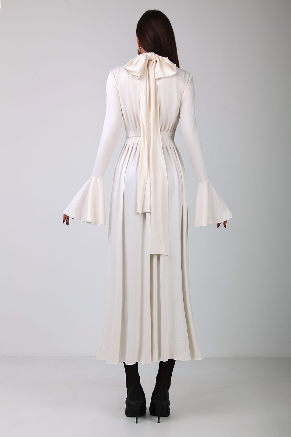 Платье-годе длины миди с овальным вырезом на груди и лентами на задней части шеи, которые можно завязать в бант. Корсет продается отдельно и идеально подойдет к платью. Артикул корсета: 25305. Длина от плеча 130 см. Состав: 92% полиэстер, 8% спандекс.