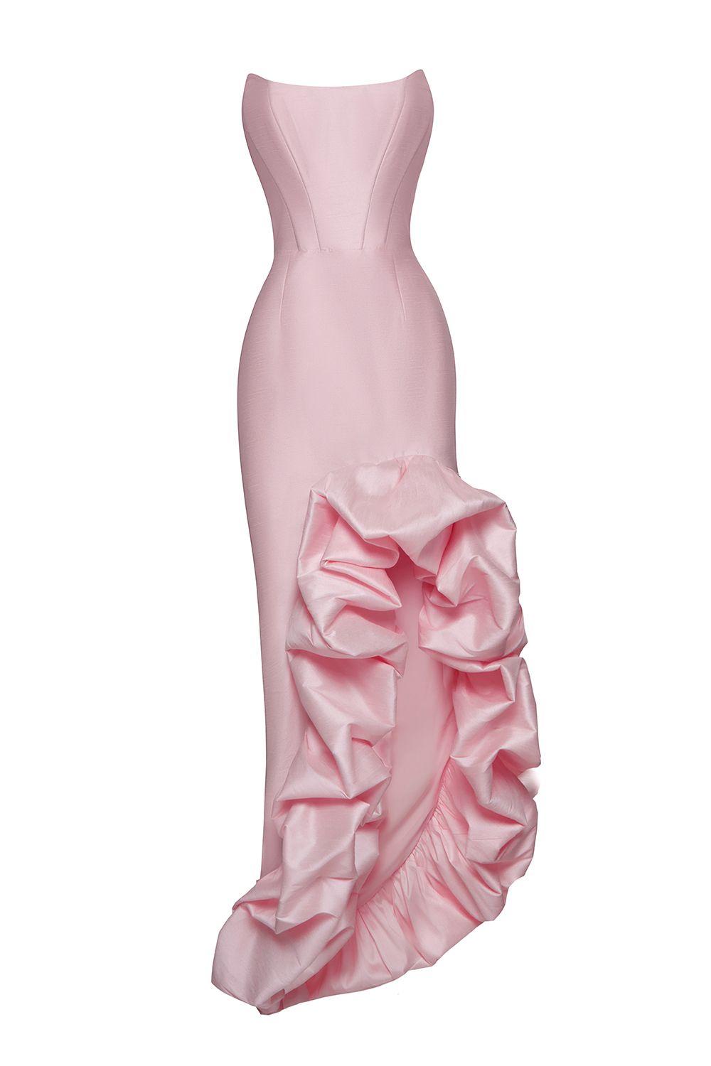 Асимметричное нежное платье длины миди, украшенное воздушными оборками из плотной ткани. Идеальный вечерний вариант. Длина от талии 100 см по длинному краю. Состав: 88% полиэстер, 12% вискоза. Подкладка: 97% полиэстер, 3% эластан.