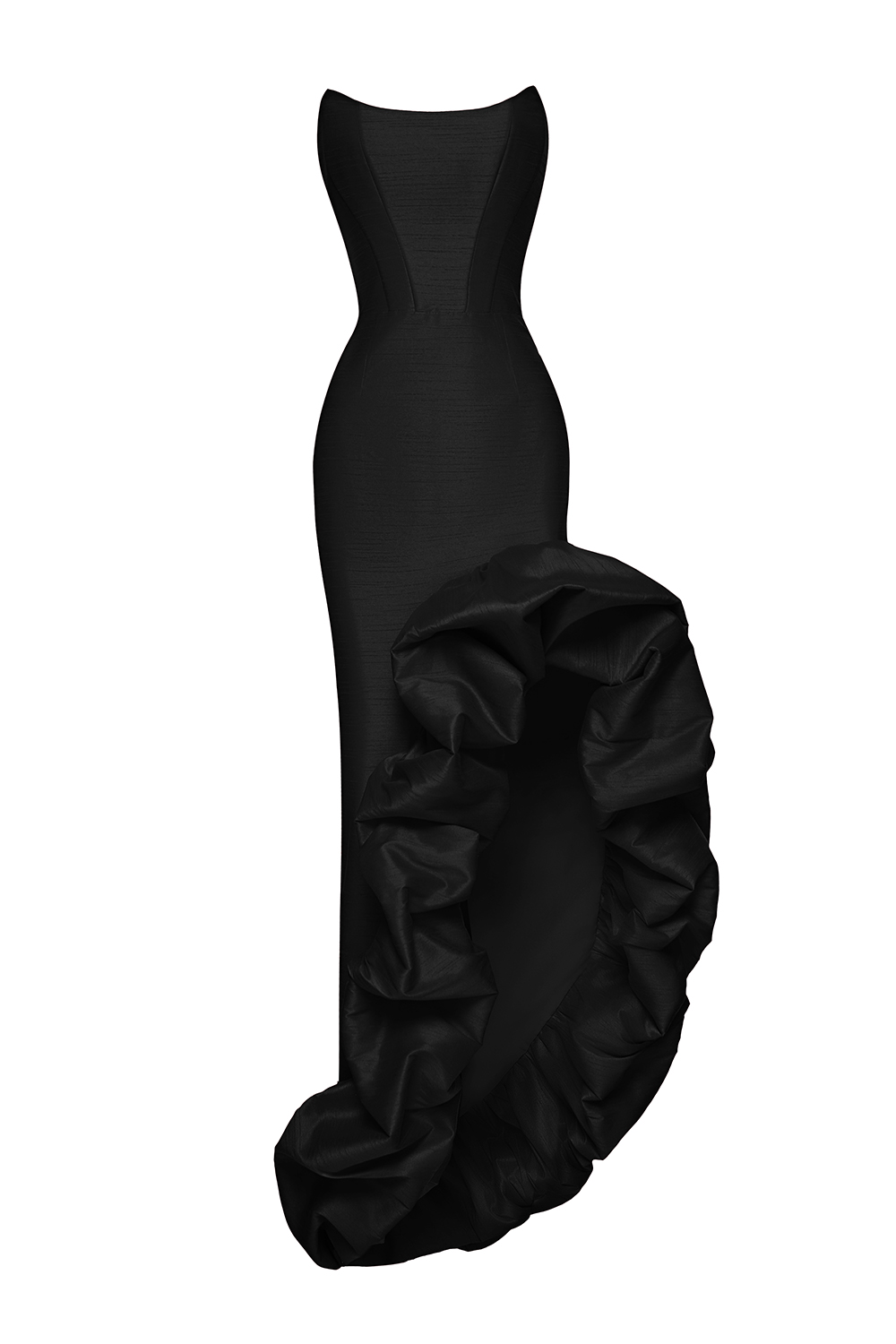 Асимметричное нежное платье длины миди, украшенное воздушными оборками из плотной ткани. Идеальный вечерний вариант. Длина от талии 100 см по длинному краю. Состав: 88% полиэстер, 12% вискоза. Подкладка: 97% полиэстер, 3% эластан.