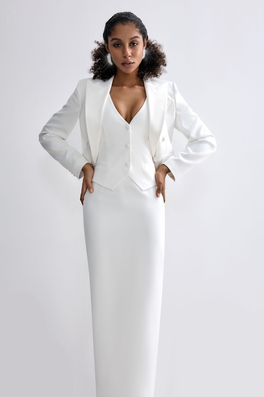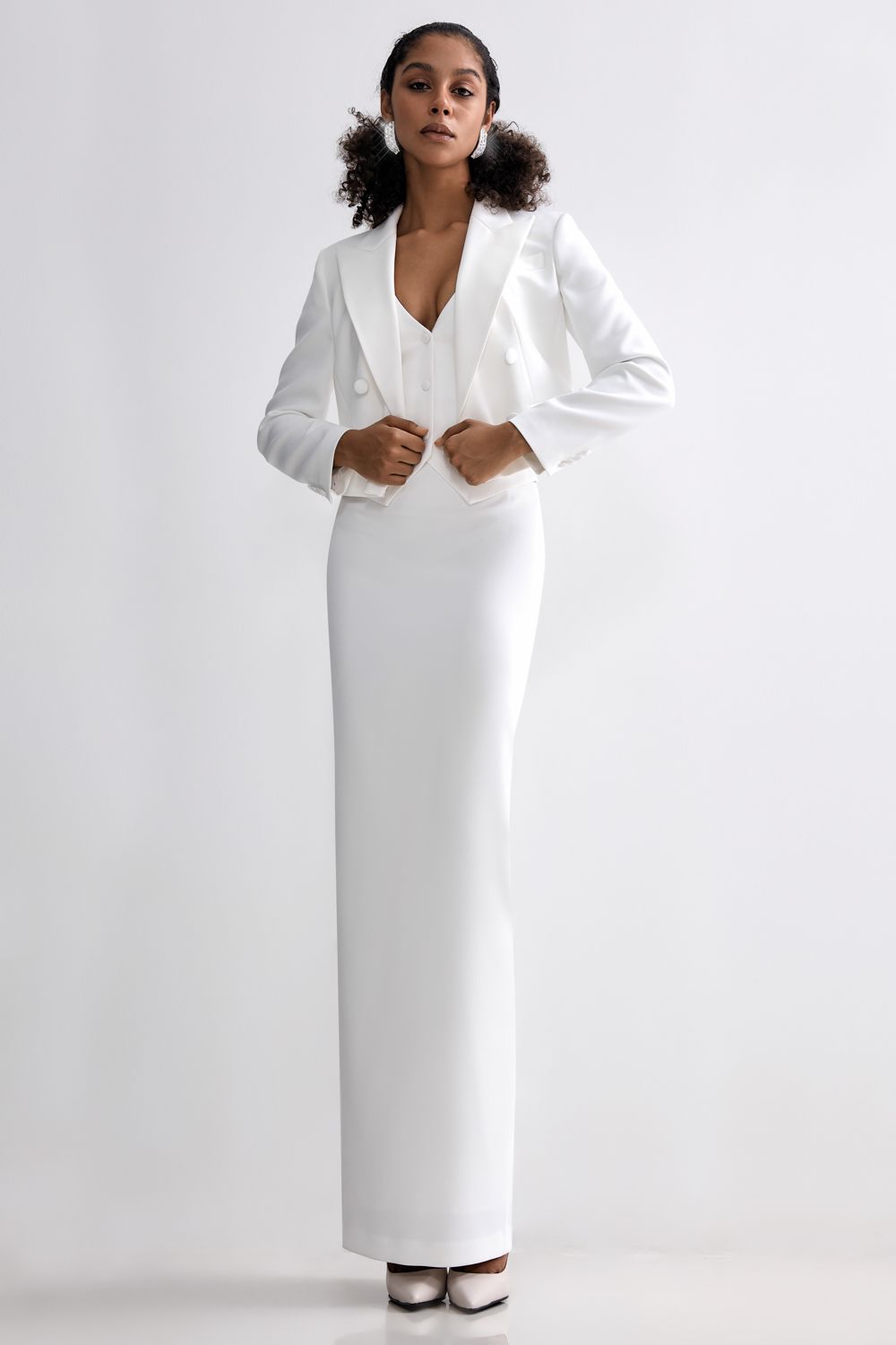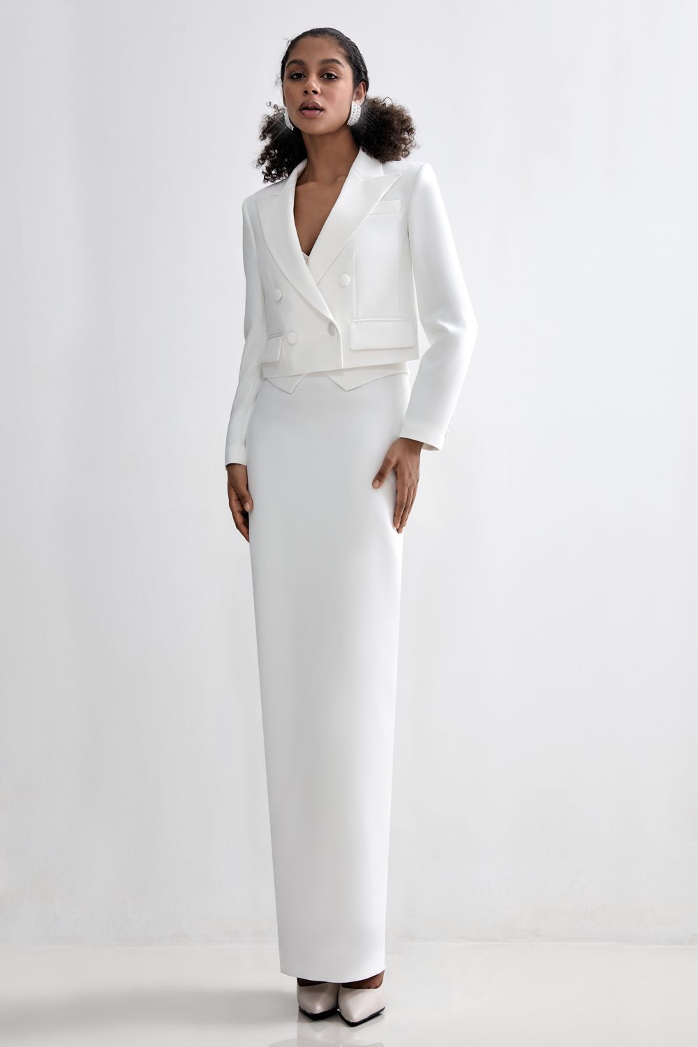 Юбка длины макси на подкладе с завышенной талией и разрезом сзади. Длина юбки 110 см. Состав: 63% вискоза, 32% полиэстер, 5% эластан, Подкладка 95% полиэстер, 5% эластан