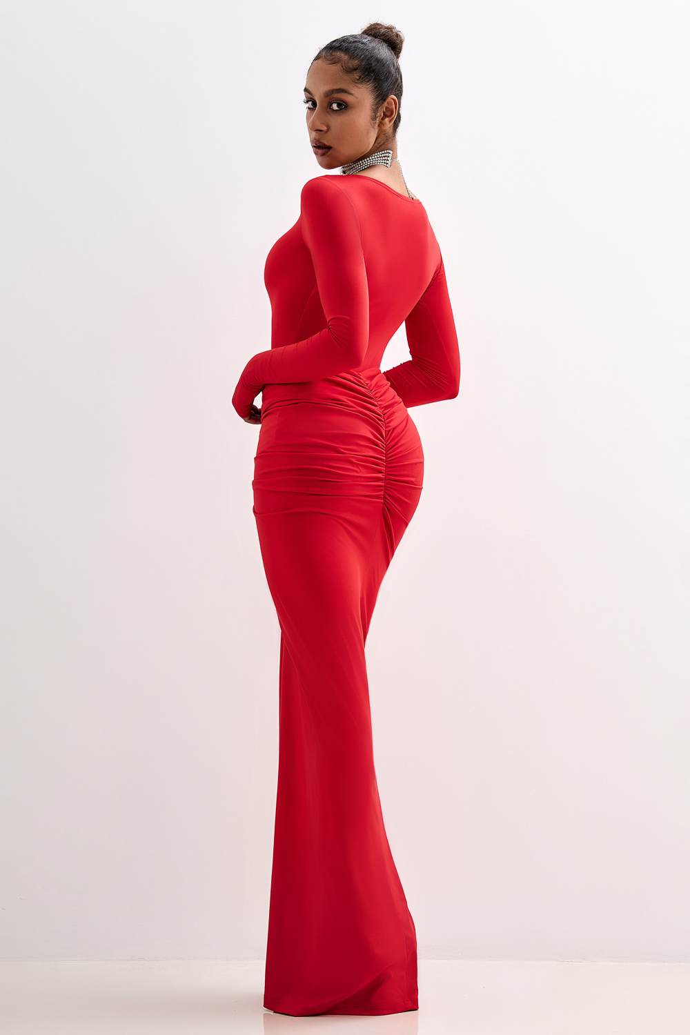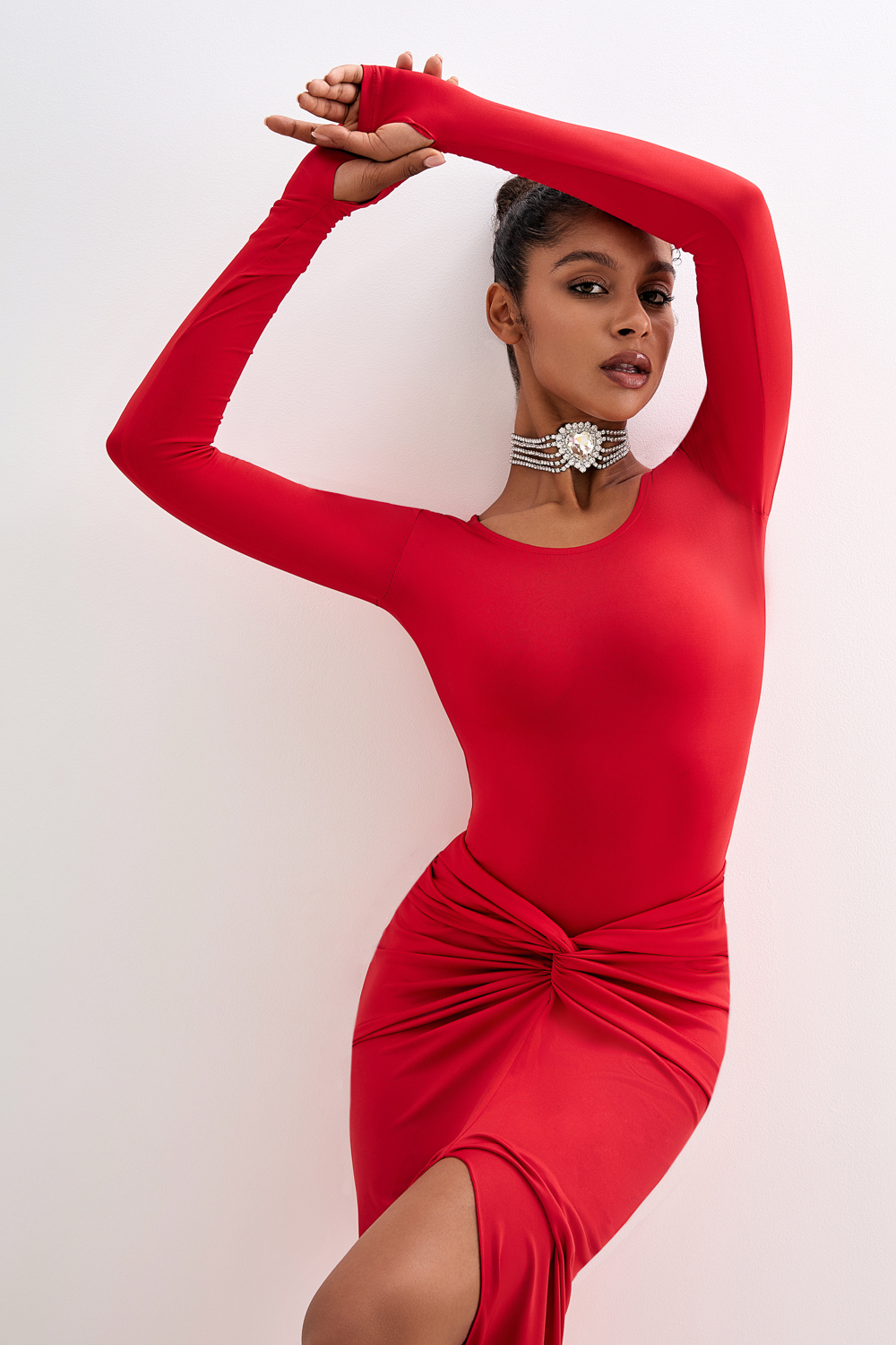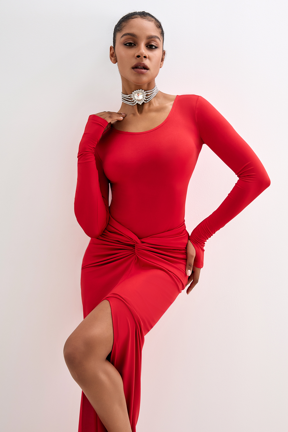 Драпированная юбка с узлом на бедрах. Длина макси, низкая посадка. Идеально сочетается с боди (арт. 57887) из коллекции LN Family. Длина юбки 104 см. Состав: 92% полиэстер, 8% спандекс.